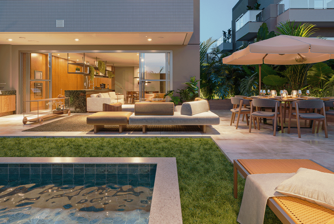 Opções de área externa privativa com garden e lazer